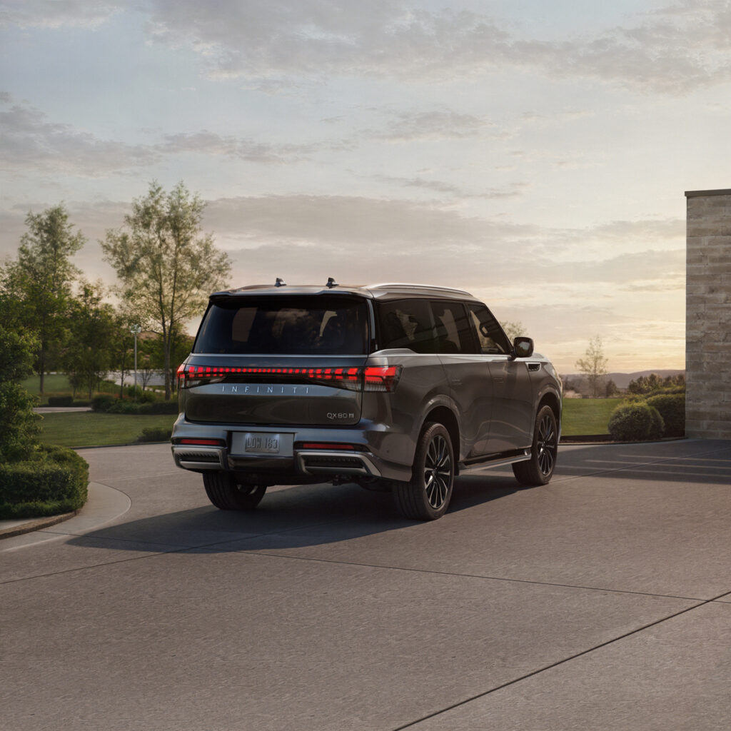 La parrilla del nuevo QX80, inspirada en un bosque de bambú, y sus luces de bienvenida, que evocan la calidez de un Ryokan japonés, resaltan la atención al detalle y la búsqueda de la perfección característica de INFINITI.